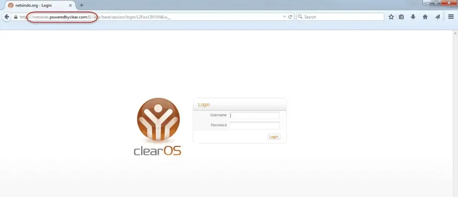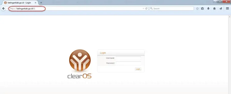 Contoh akses ke server ClearOS Professional menggunakan Nama Domain Internet.