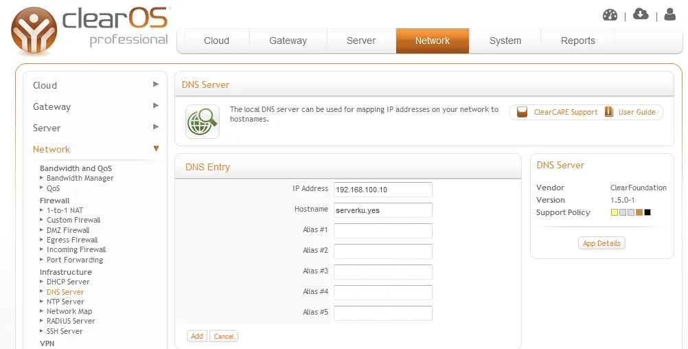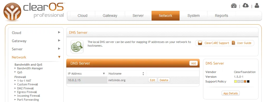 Dengan DNS Server, akses ke ClearOS lebih mudah dilakukan baik dari Lokal (LAN) maupun dari Internet.