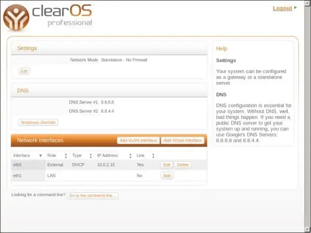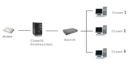Dalam mode ini, ClearOS Professional berdiri sebagai standalone server. Fitur firewall secara default sudah aktif.