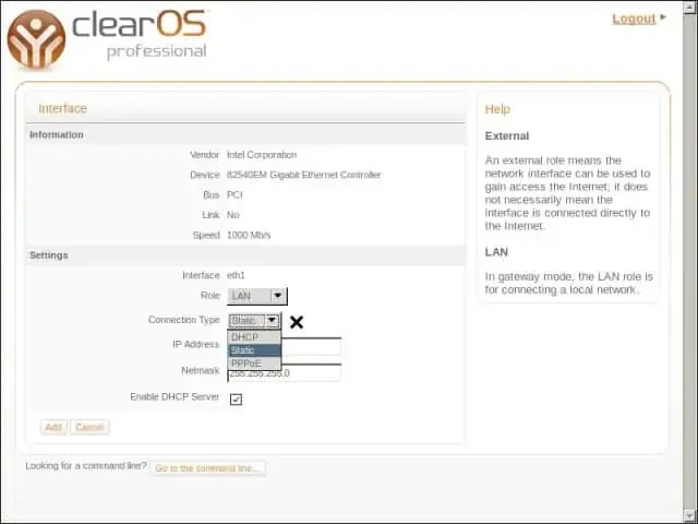Tipe koneksi di ClearOS 6 ada 3 jenis yaitu:
