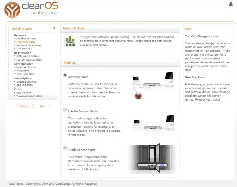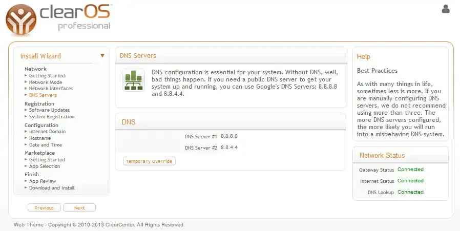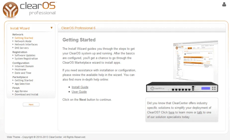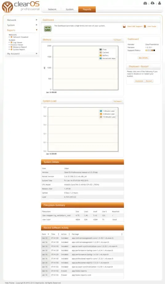 Anda akan dihadapkan kepada tampilan Dashboard ClearOS Professional.