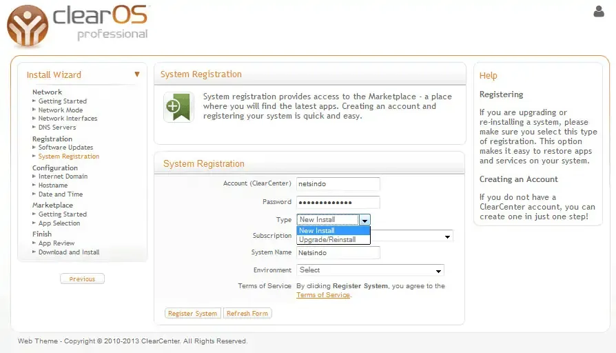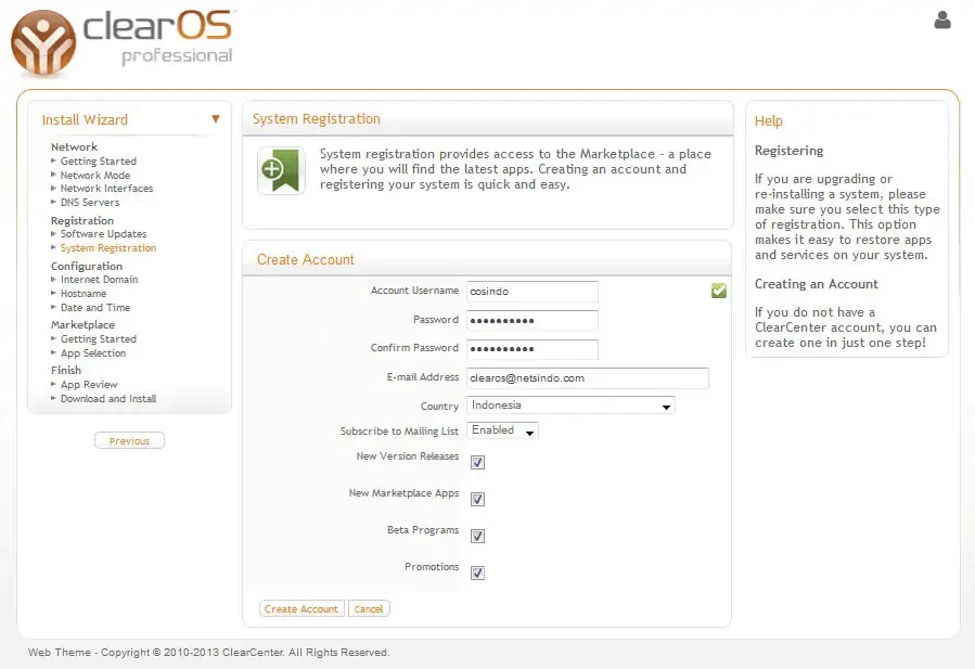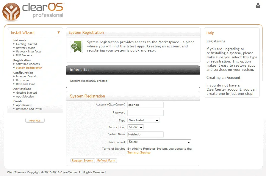 Proses Registrasi ClearOS Professional ini membutuhkan akun ClearCenter. Ada 2 cara memperoleh akun ClearCenter :
