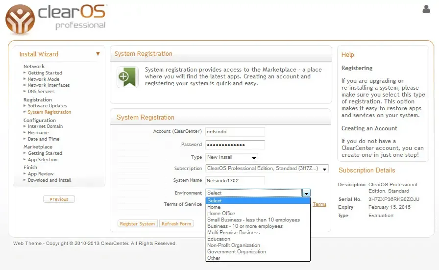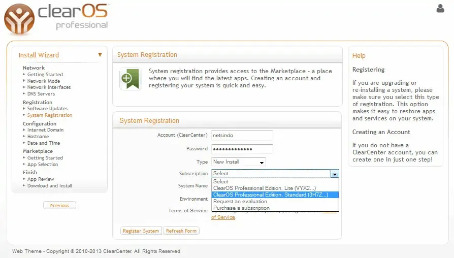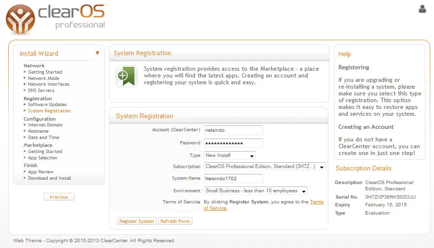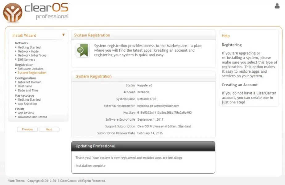 Anda akan mendapatkan account ClearCenter yang sudah aktif dan Subscription ClearOS Professional yang tinggal dipilih.